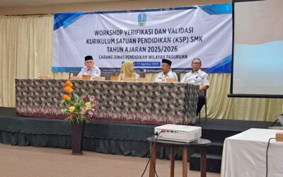 Pasuruan, 27 Agustus 2025 – Workshop Verifikasi dan Validasi Kurikulum Satuan Pendidikan (KSP) SMK Tahun Ajaran 2025/2026 yang digelar oleh Cabang Dinas Pendidikan (Cabdindik) Wilayah Pasuruan berlangsung lancar dan penuh antusiasme. Kegiatan ini dipusatkan di Aula Rumah Makan Kurnia, mulai pukul 07.30 hingga 13.00 WIB, dengan menghadirkan 82 Wakil Kepala Sekolah Bidang Kurikulum dari seluruh…