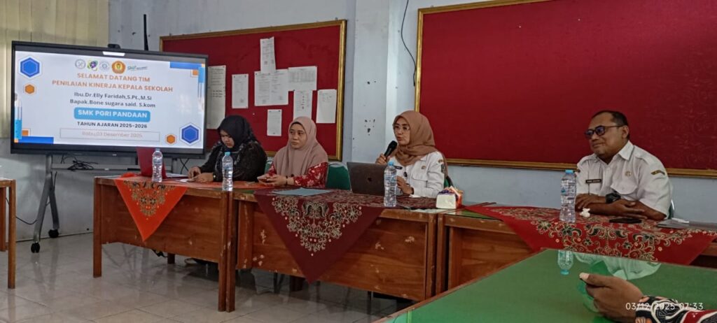 Pada Rabu, 3 Desember 2025, SMK PGRI Pandaan melaksanakan kegiatan Penilaian Kinerja Kepala Sekolah (PKKS) sebagai bagian dari upaya peningkatan mutu manajemen sekolah. Kegiatan ini dibuka secara resmi oleh Komite Sekolah, yang menegaskan pentingnya evaluasi kinerja sebagai sarana meningkatkan kualitas layanan pendidikan.